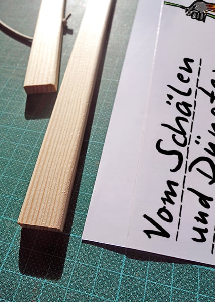 Mit den schmucken Holzleisten kann man die Wortspieltierposter ganz schnell und einfach aufhängen. Die eingefassten Magnete halten das zwischen den Leisten eingeklemmte Papier fest zusammen.